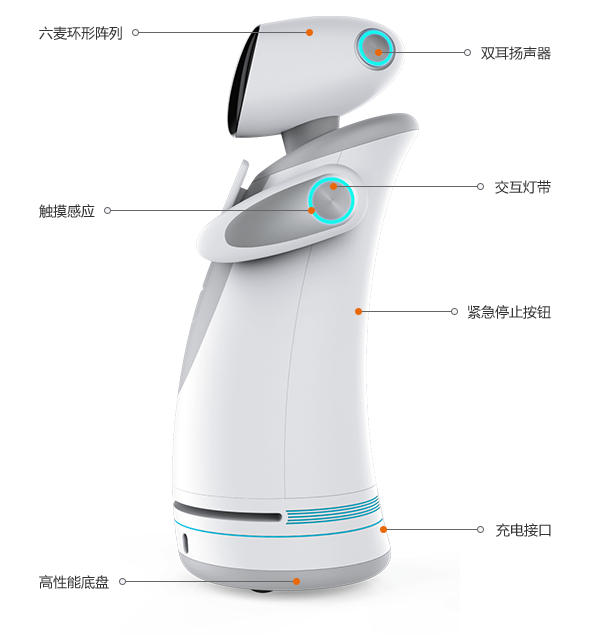 標(biāo)準(zhǔn)版服務(wù)機(jī)器人機(jī)身高度150cm,具有豐富的人機(jī)交互體驗(yàn),是企業(yè)服務(wù)的實(shí)用之選