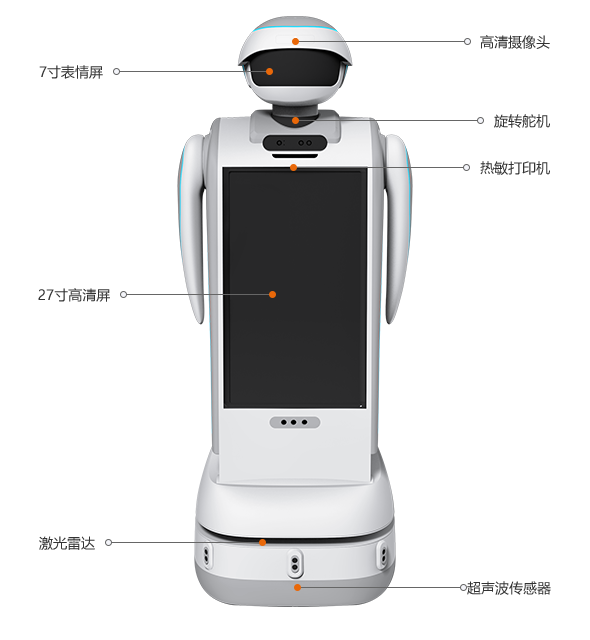 大屏版服務(wù)機(jī)器人首次采用27寸超高清大屏,適用各類應(yīng)用場(chǎng)景,實(shí)現(xiàn)人機(jī)零界限交互體驗(yàn)