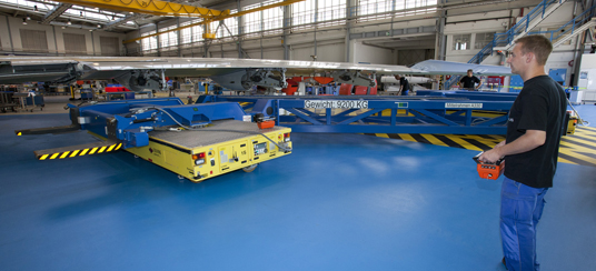 Solving的定制輪式搬運機特別適合于重載處理。自調(diào)平軸確保車輪始終始終均勻地加載并始終與地板接觸。