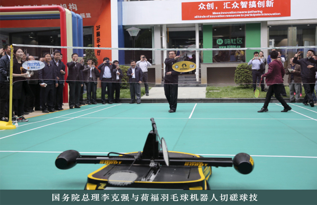 小小的身軀,大大的技術(shù)?!靶∮稹辈粌H僅受到了大眾的喜愛,也深受國家領(lǐng)導(dǎo)人的青睞。國務(wù)院總理李克強(qiáng)、國家副主席李源潮、國務(wù)院副總理劉延?xùn)|等國家領(lǐng)導(dǎo)人都曾與“小羽”親切過招,李克強(qiáng)總理在考察成都菁蓉創(chuàng)客小鎮(zhèn)時(shí),就曾與羽毛球機(jī)器人切磋球技,雙方打成1:1平。