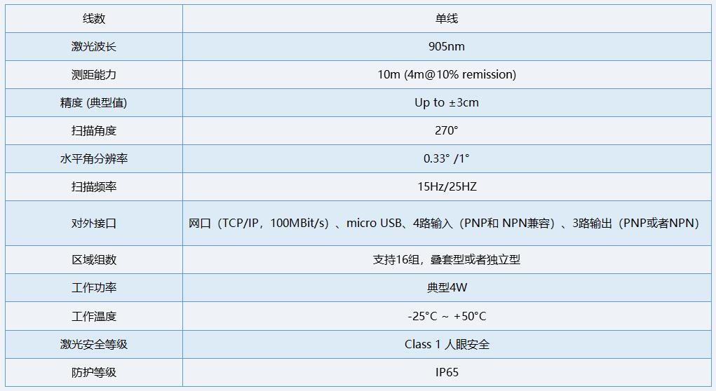WLR-718工業(yè)防撞雷達(dá),主要應(yīng)用于激光叉車及AGV的安全防護(hù),雷達(dá)內(nèi)部集成區(qū)域劃分算法,可配置任意形狀,輸出IO信號(hào),最大保護(hù)距離10m,保證AGV的行駛安全。同時(shí)可應(yīng)用于SR及AGV的自然導(dǎo)航,輸出高質(zhì)量點(diǎn)云,保證±3cm測(cè)距精度,支持避障算法,為移動(dòng)設(shè)備提供軟硬結(jié)合的安全防護(hù);雷達(dá)采用多重回波設(shè)計(jì)、可調(diào)節(jié)觸發(fā)點(diǎn)數(shù)、可調(diào)節(jié)探測(cè)閾值的功能設(shè)計(jì),解決了在高灰塵、有水霧、多棉絮環(huán)境誤觸發(fā)的應(yīng)用難題。