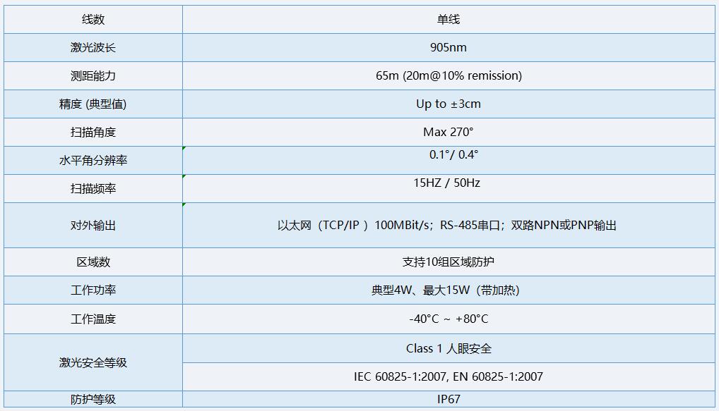 WLR-715系列激光雷達(dá)采用激光-時(shí)間飛行(Time of Flight)原理,結(jié)合高頻激光脈沖發(fā)生技術(shù)、多脈沖回波技術(shù)、高精度計(jì)時(shí)電路和高效精密的光學(xué)系統(tǒng)和高速掃描系統(tǒng),可在65米范圍內(nèi)快速精準(zhǔn)測(cè)距,具有掃描角度大、近距離精度高、抗干擾能力強(qiáng)等特點(diǎn),被廣泛應(yīng)用于激光輪軸(驅(qū)動(dòng)軸)識(shí)別、激光車型識(shí)別、激光光柵、激光替代線圈等系統(tǒng)方案中。