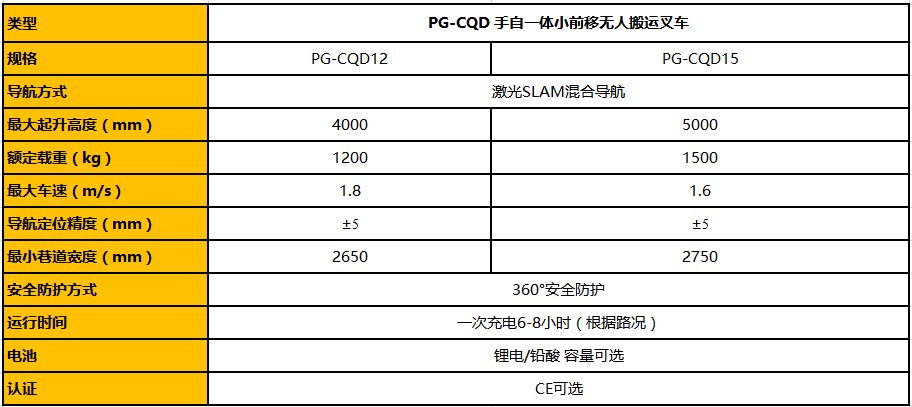 PG-CQD無人叉車性能參數(shù)