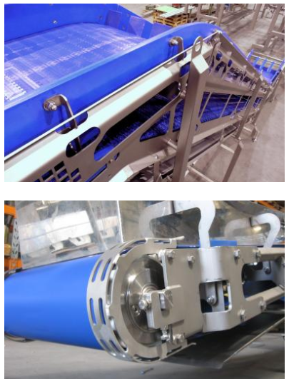 輸送機是根據(jù)衛(wèi)生概念以 3D 方式設(shè)計的,完全由內(nèi)部制造、測試并在需要時安裝在最終客戶處。可選地,可以將整個系列的功能模塊添加到這些傳送帶上,例如傳送裝置、升降機、(卸)堆器、擋塊、轉(zhuǎn)盤和料斗。這些模塊也是完全在內(nèi)部設(shè)計和建造的。