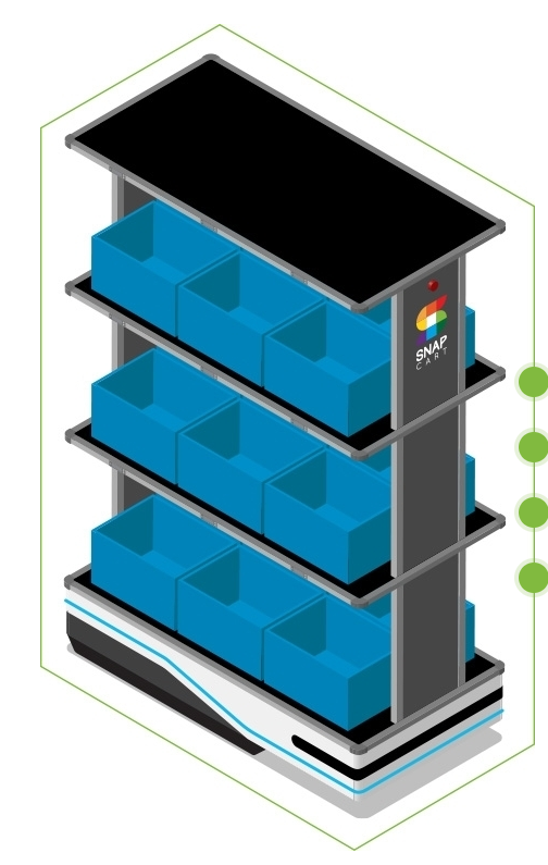 由于揀貨員在倉(cāng)庫(kù)地板上反復(fù)走動(dòng),企業(yè)每年都會(huì)損失數(shù)千個(gè)生產(chǎn)工時(shí)。SnapCart 是一種創(chuàng)新的“從人到貨”的方法,它將揀貨員限制在一個(gè)特定的單元格內(nèi),由自動(dòng)推車提供服務(wù)。揀貨員負(fù)責(zé)揀選,手推車負(fù)責(zé)行走。