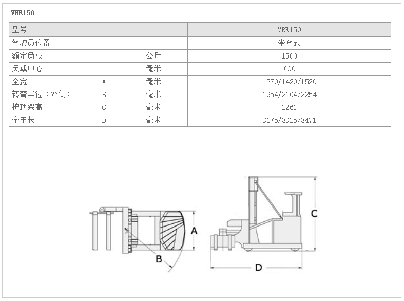 豐田:非常窄巷道車叉車(人下行) VRE150