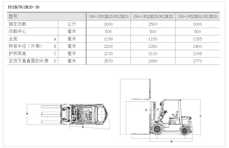 豐田 中型工況:內(nèi)燃平衡重(柴油/汽油/LPG) FDZN/FGZN20-30