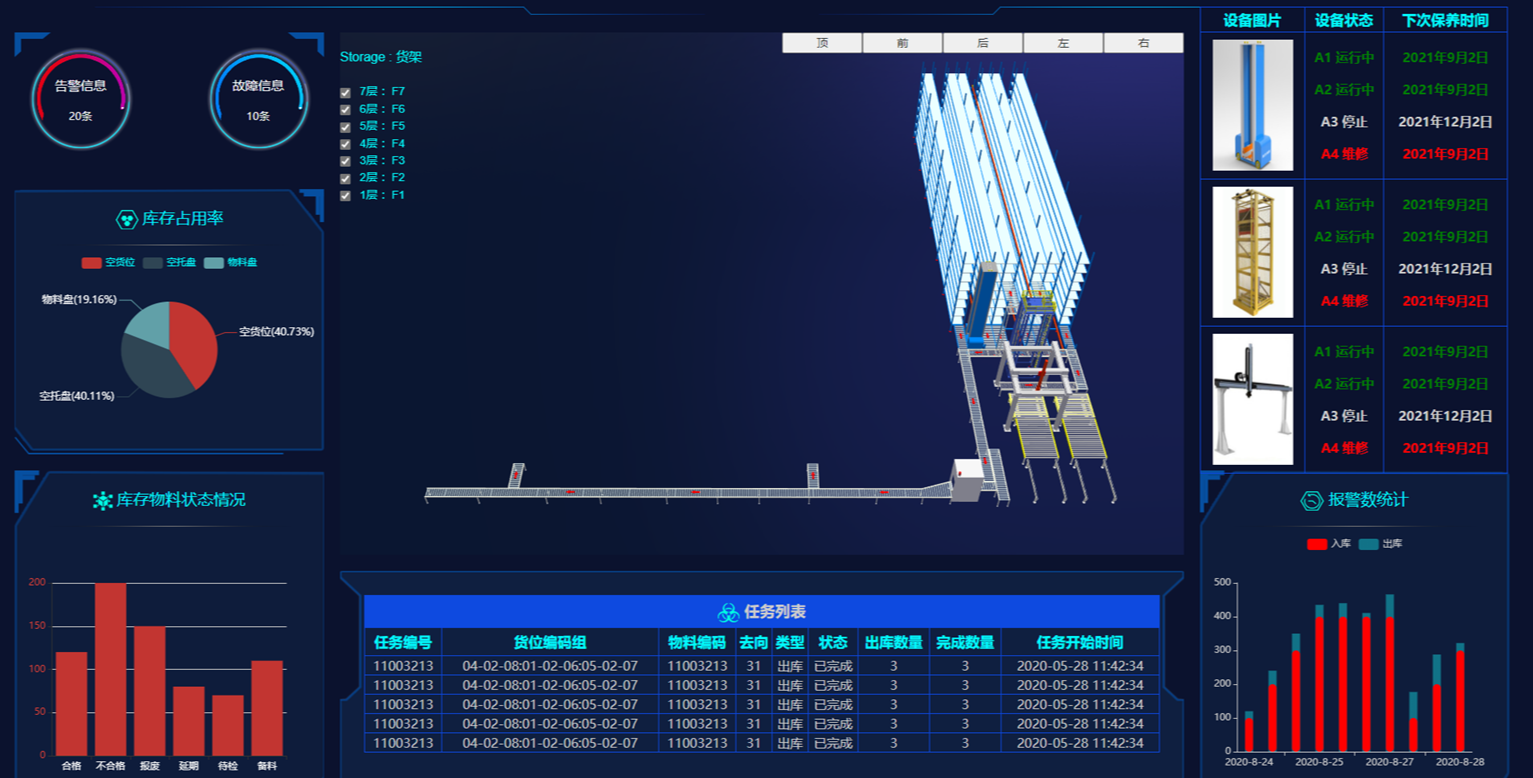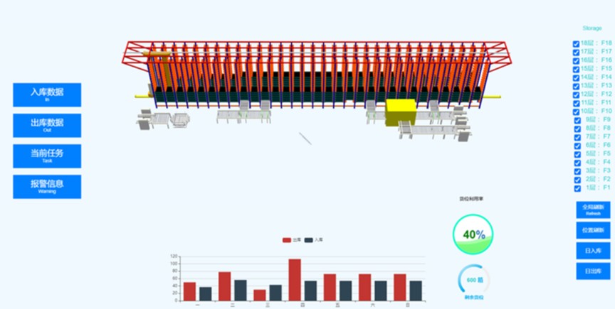 提供自動(dòng)化立體倉庫三維展示,通過wms系統(tǒng)同3D系統(tǒng)對(duì)接,實(shí)現(xiàn)實(shí)時(shí)查看立庫設(shè)備的運(yùn)行狀態(tài),貨位存儲(chǔ)情況以及貨位利用率