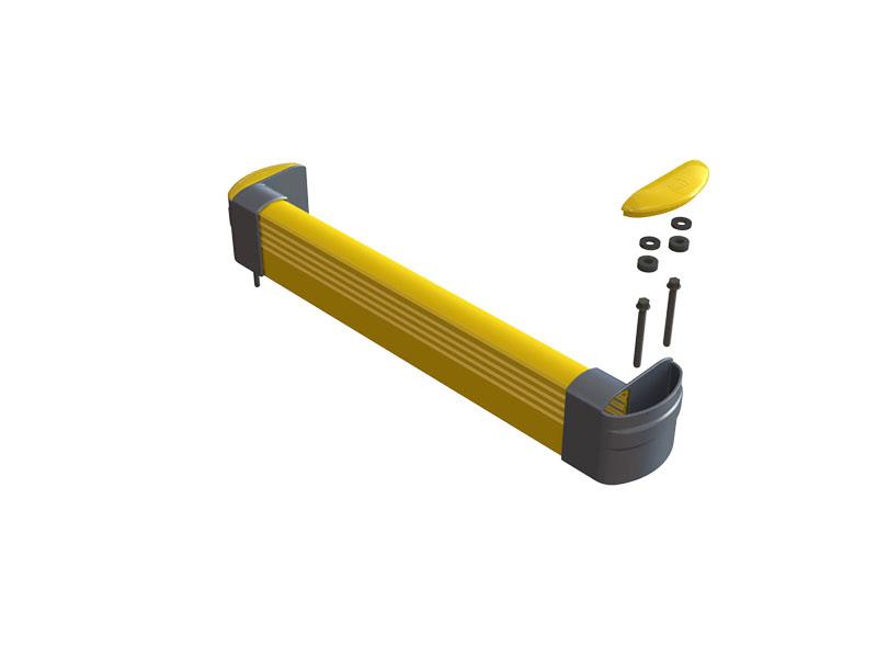 具有創(chuàng)造性的半月形鑄件和高分子黃色彈性護欄組成;半月形結(jié)構的圓弧過渡能夠更有效的降低碰撞的機會,同時弧形設計也可以將碰撞力進行導向,而且黃色護欄在碰撞時能發(fā)生形變,吸收能量,保護貨架及人員的安全。該產(chǎn)品沒有外露螺絲,該設計能夠很好的減少叉車輪胎的“啃胎”情形。