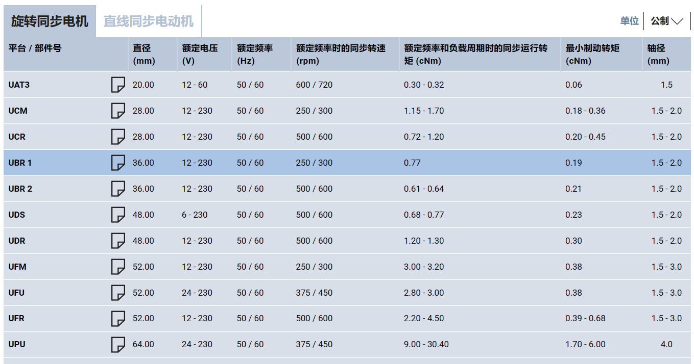 德昌電機(jī)的交流同步電機(jī),旋轉(zhuǎn)運(yùn)動轉(zhuǎn)速可達(dá)720轉(zhuǎn)/分,直線運(yùn)動的速度可達(dá)8.33mm/s。包括各種性能和可達(dá)230V的電壓范圍,旋轉(zhuǎn)型同步電機(jī)可提供高達(dá)35cNm的運(yùn)行轉(zhuǎn)矩,直線型同步電機(jī)可提供強(qiáng)達(dá)48N的力。德昌電機(jī)同步電機(jī)可根據(jù)每一個客戶不同應(yīng)用的力/轉(zhuǎn)矩要求和集成需求而定制設(shè)計(jì)。下面列舉的平臺電機(jī)是一些應(yīng)用的例子。PDF產(chǎn)品數(shù)據(jù)表提供了電機(jī)的性能細(xì)節(jié)。您可聯(lián)系我們獲取樣品并提出您的工程定制要求