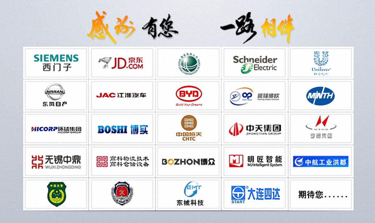 柯金AGV及相關(guān)產(chǎn)品,以卓越的性價比,領(lǐng)先的技術(shù),可靠的產(chǎn)品贏得了廣大客戶的信賴,已經(jīng)和多家知名企業(yè)形成戰(zhàn)略合作及提供相應(yīng)的產(chǎn)品服務(wù),產(chǎn)品成功應(yīng)用于 比亞迪集團(tuán),延鋒彼歐,敏實集團(tuán),康明斯,京東集團(tuán),博實股份,環(huán)球集團(tuán),中航工業(yè),中材集團(tuán),國家電網(wǎng),武警水電,武警消防,德國菲尼克斯電氣集團(tuán),亨通集團(tuán),哈爾濱機(jī)器人集團(tuán),北京高科,史陶比爾,無錫中鼎,恩歐凱,中原內(nèi)配,北京航天航空大學(xué)等