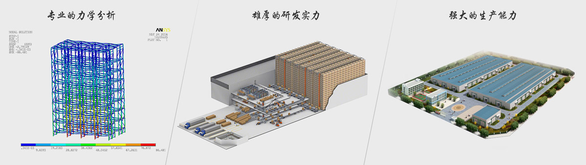 公司嚴(yán)格按照國家《鋼貨架結(jié)構(gòu)設(shè)計規(guī)范》及國家其它行業(yè)標(biāo)準(zhǔn),通過專業(yè)的有限元分析對每款產(chǎn)品的結(jié)構(gòu)強度、穩(wěn)定性進(jìn)行分析檢測,保證產(chǎn)品的設(shè)計合理及使用安全。我們一心致力于打造“優(yōu)質(zhì)、經(jīng)濟、安全、可靠”的高精度立體儲存設(shè)備,為客戶提供一流的服務(wù)。
