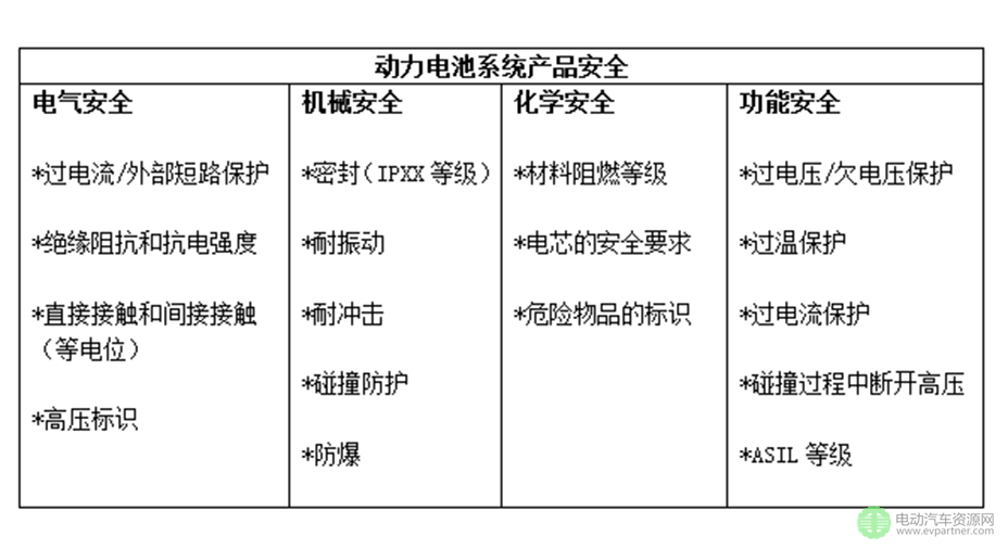 ISO26262中指出,安全即摒除不合常理的危險(xiǎn)。動(dòng)力電池系統(tǒng)產(chǎn)品安全包括:電氣安全、機(jī)械安全、化學(xué)安全、功能安全等。作為電動(dòng)車的核心部件,動(dòng)力電池系統(tǒng)開發(fā)應(yīng)遵循汽車產(chǎn)品的開發(fā)流程。