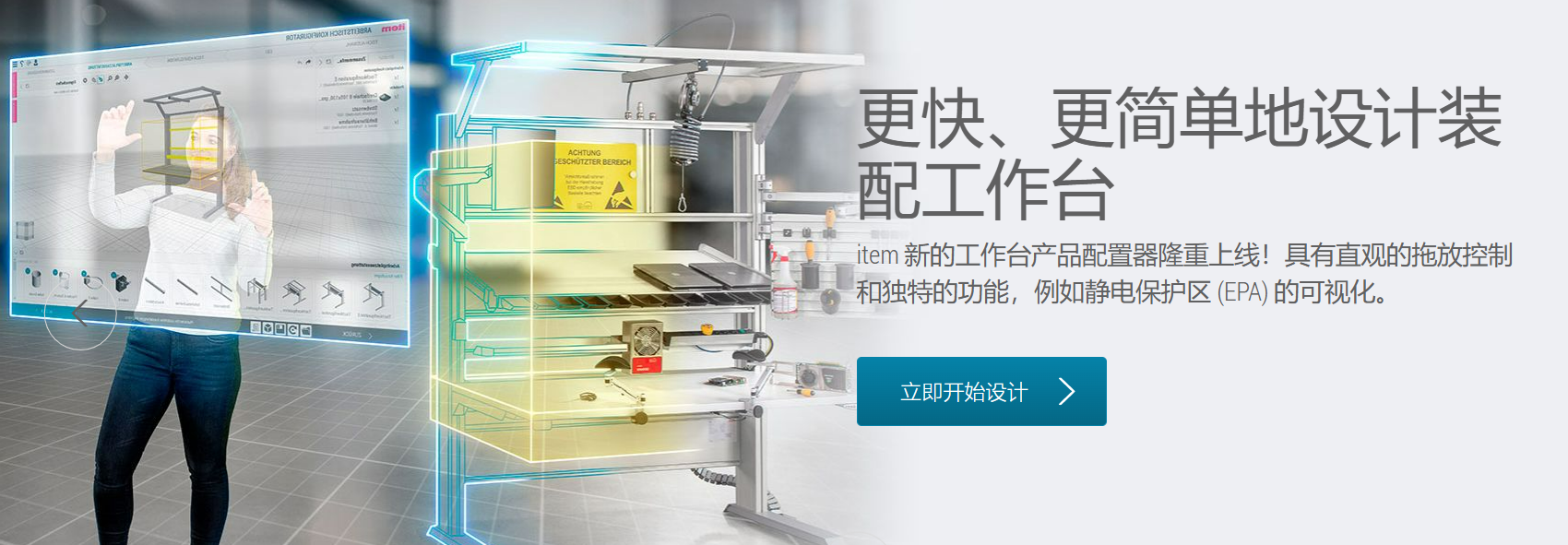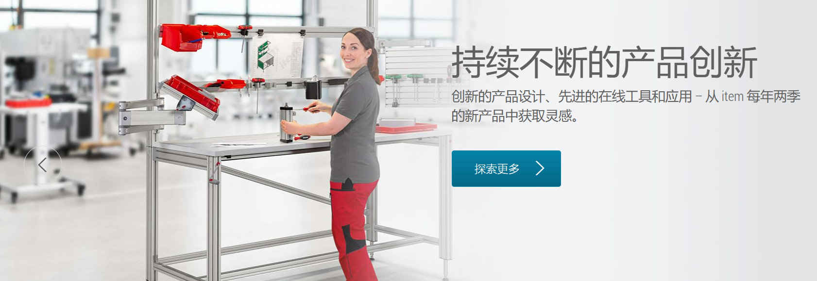 除了著名的 MB 工業(yè)鋁型材裝配系統(tǒng)之外,item 的精益生產(chǎn)系統(tǒng)、線性模組、工作臺系統(tǒng)及樓梯平臺系統(tǒng)為精益生產(chǎn)、自動化、人體工學(xué)和大型機械設(shè)施提供解決方案。