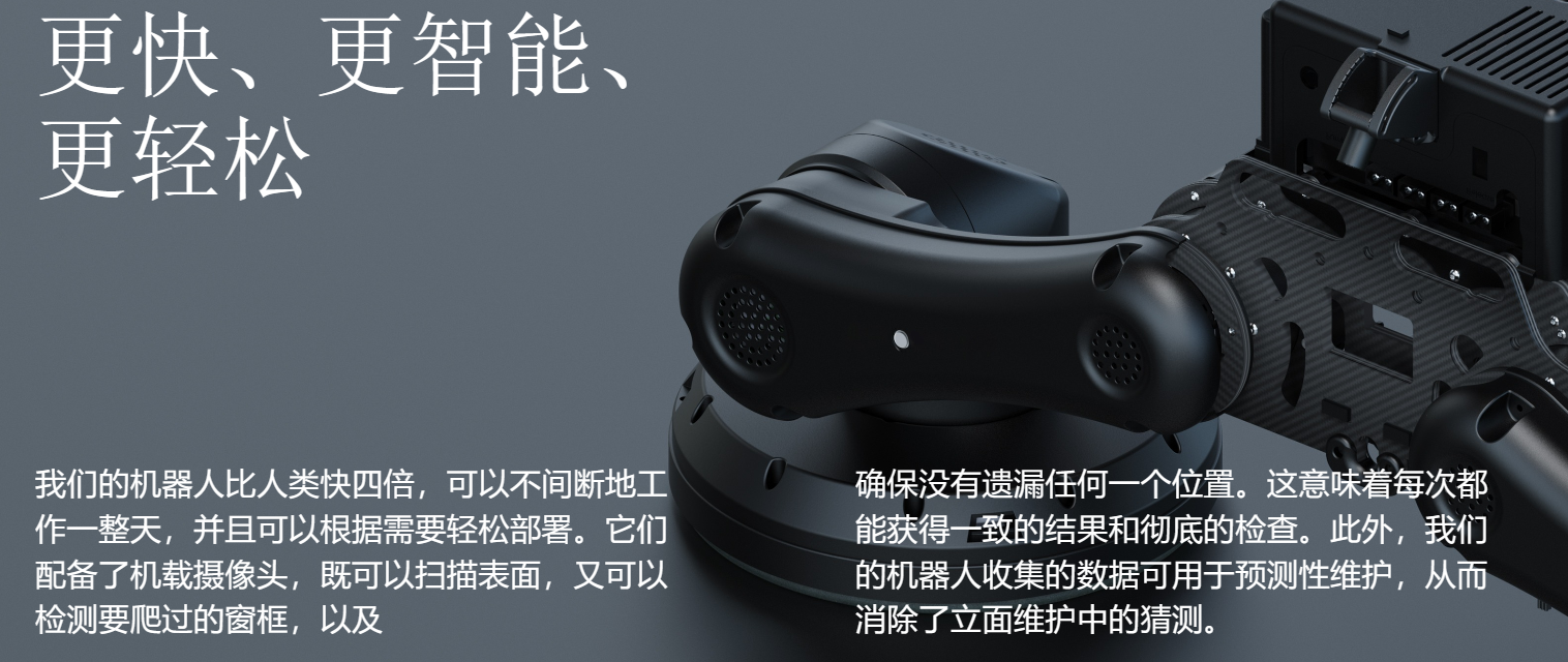 Verobotics的機(jī)器人不僅提高了建筑外觀的維護(hù)效率,而且通過自動(dòng)化技術(shù),顯著提高了工作的安全性。此外,這些機(jī)器人收集的數(shù)據(jù)還可以用于預(yù)測性維護(hù),消除了外觀維護(hù)的猜測工作。這種技術(shù)的運(yùn)用為建筑物業(yè)主和服務(wù)提供商帶來了創(chuàng)新的解決方案,同時(shí)也提高了建筑物的整體外觀和健康狀況。