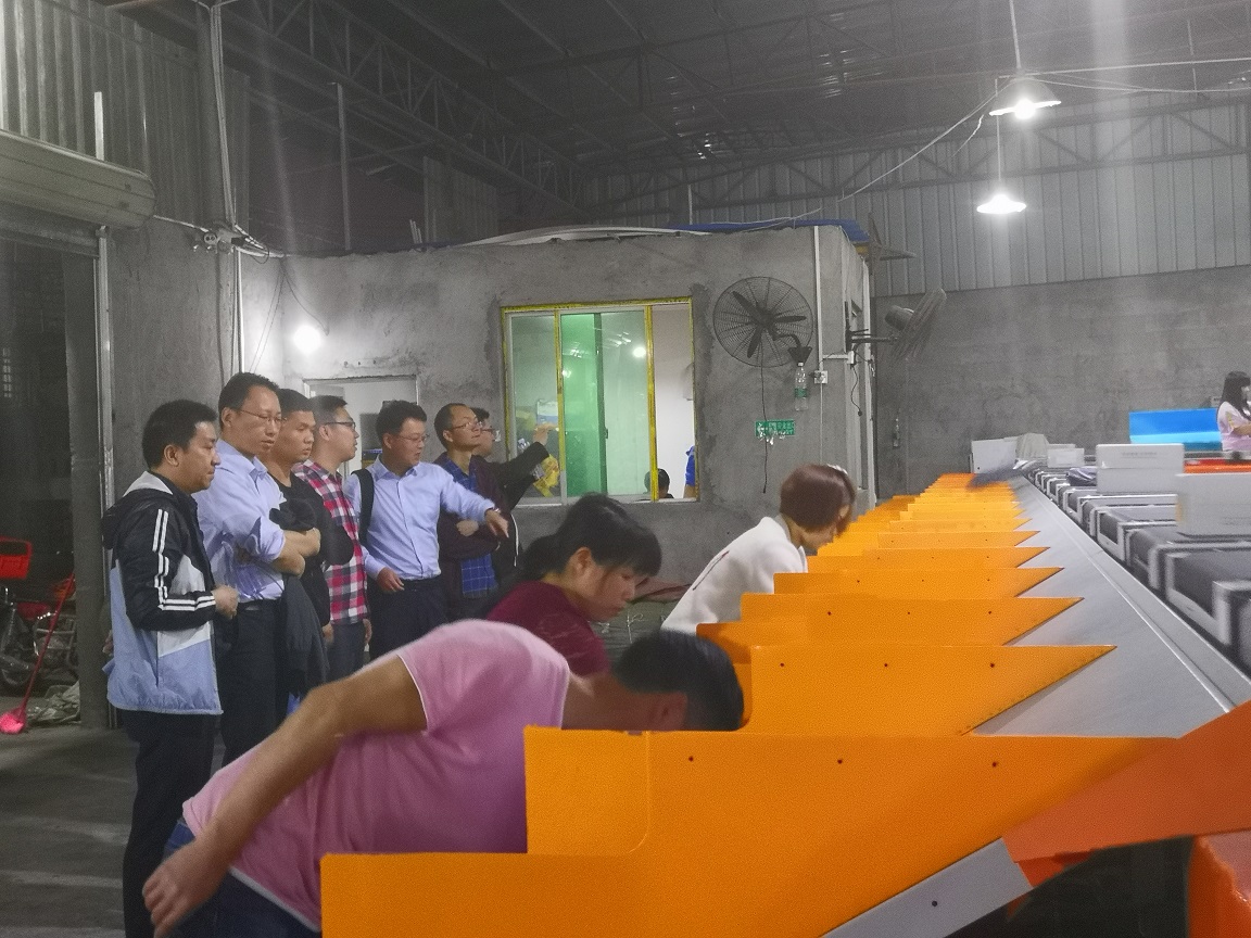 2019年3月28日,廣東省郵政速遞領(lǐng)導(dǎo)一行蒞臨廣州市花都獅嶺中通網(wǎng)點分揀中心智能動車軌道機器人分揀現(xiàn)場進行考察。