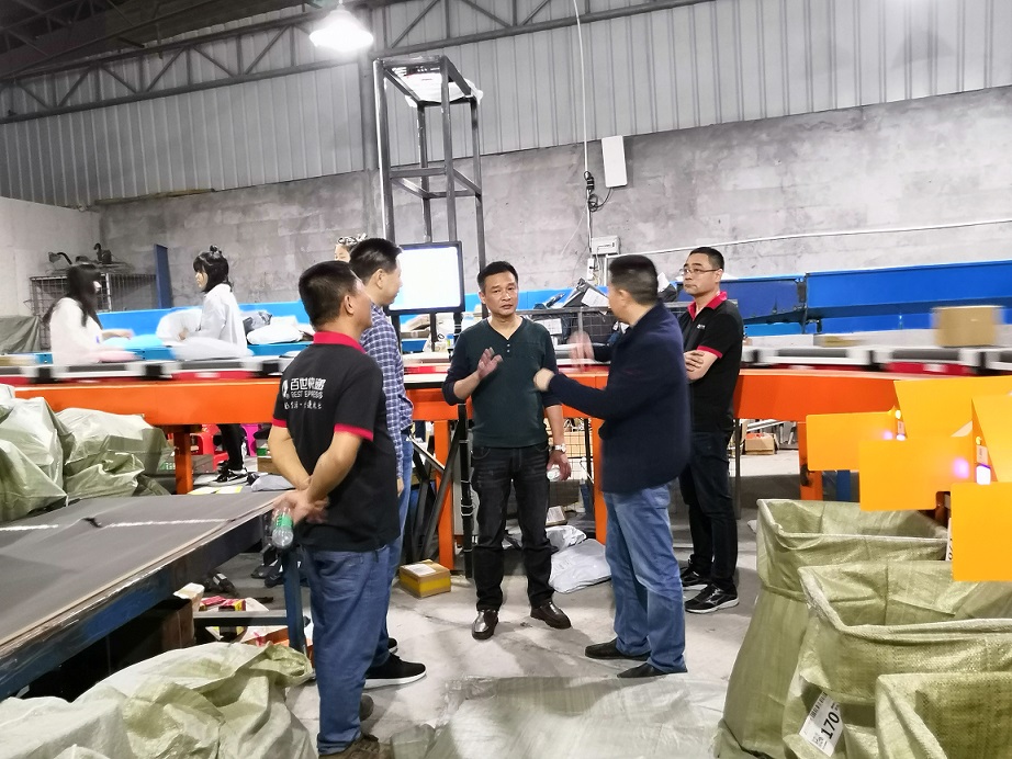 番禺百世領(lǐng)導(dǎo)在現(xiàn)場與我司領(lǐng)導(dǎo)確認(rèn),其運(yùn)營管理的番禺大石鎮(zhèn)分揀中心由我司承建,采用智能動(dòng)車軌道分揀方案建設(shè);同時(shí)謝總一行也針對其分揀中心特點(diǎn),對自動(dòng)化分揀建設(shè)提出了相關(guān)要求和建議。